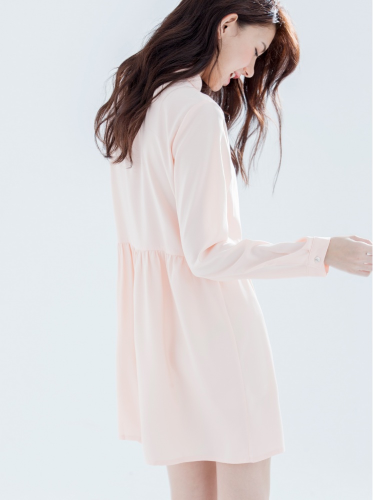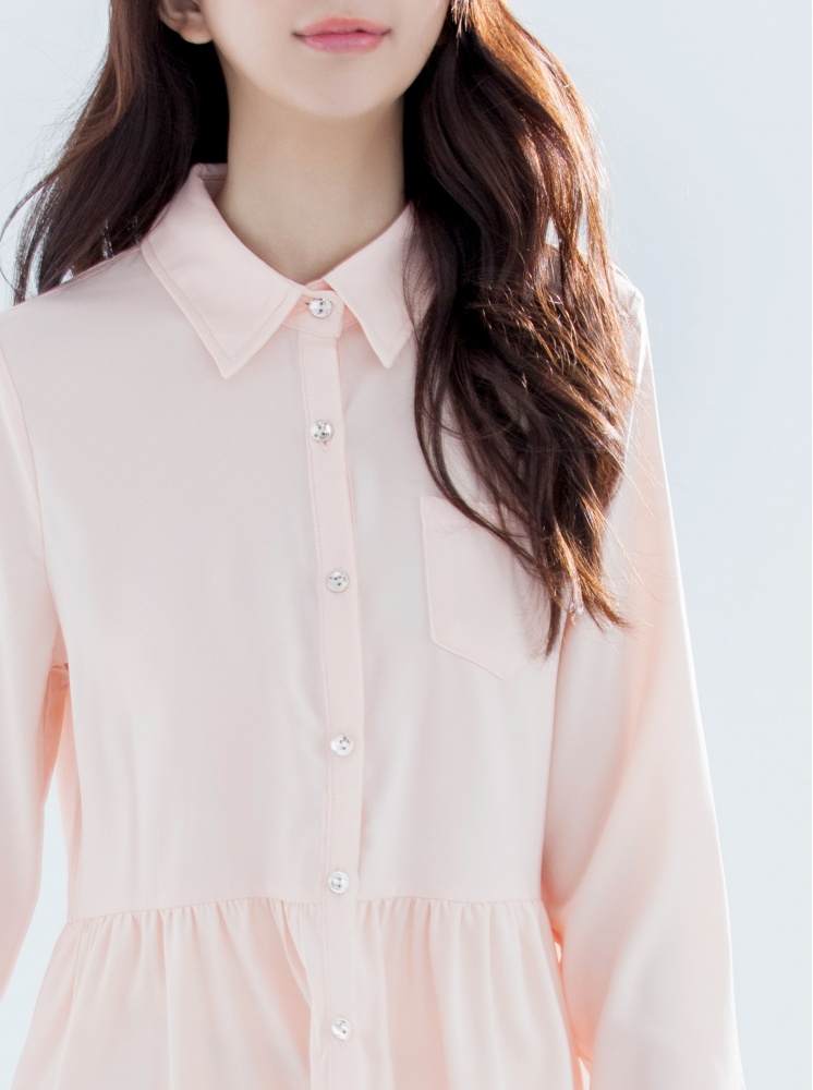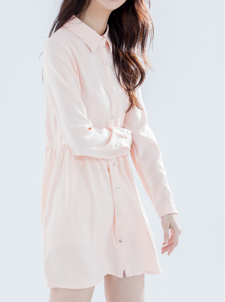 • 修身銀扣襯衫洋裝-蜜桃粉