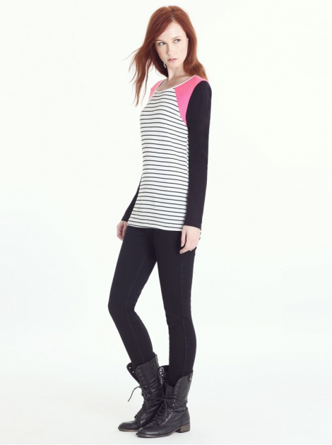 親膚柔棉條紋上衣-桃紅:選擇尺寸