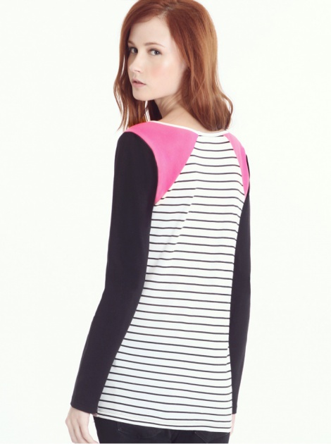 Vanessa 親膚柔棉條紋上衣-桃紅
