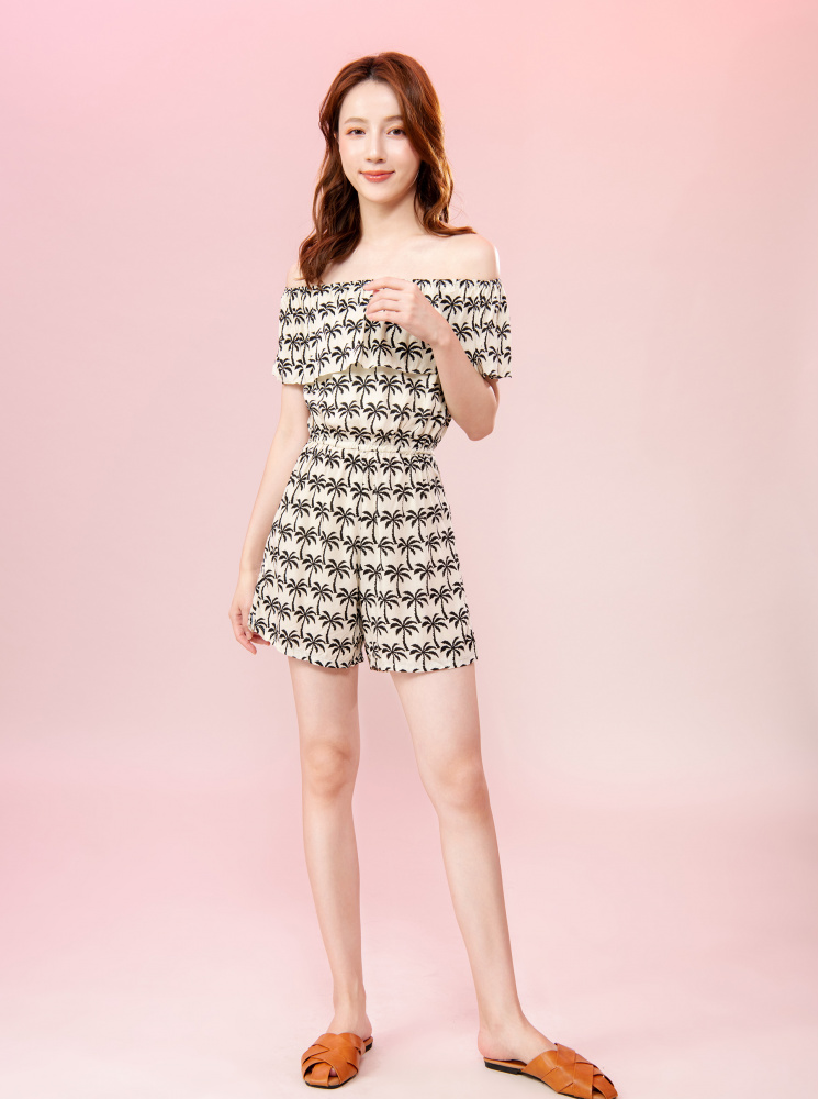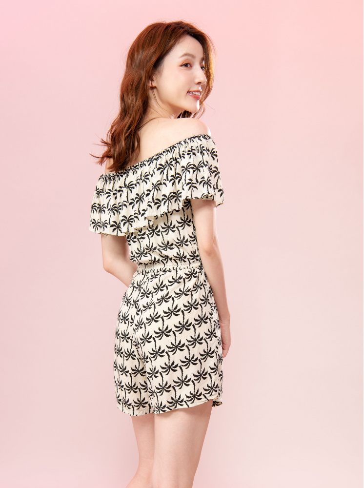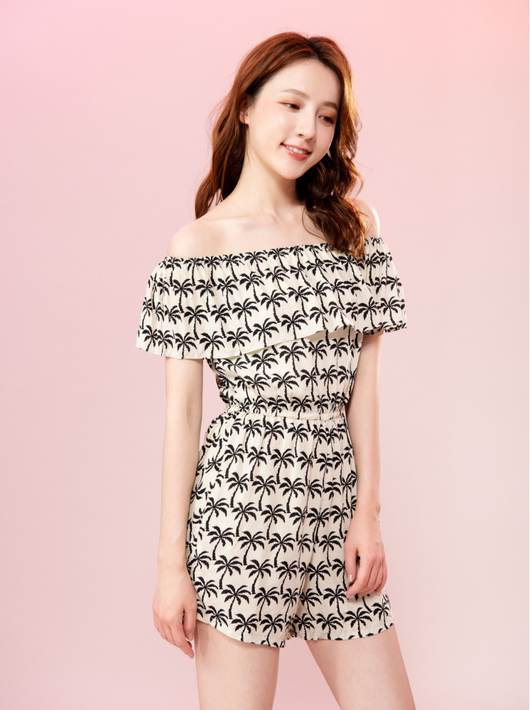 陽光椰林俏皮連身褲-白:選擇尺寸