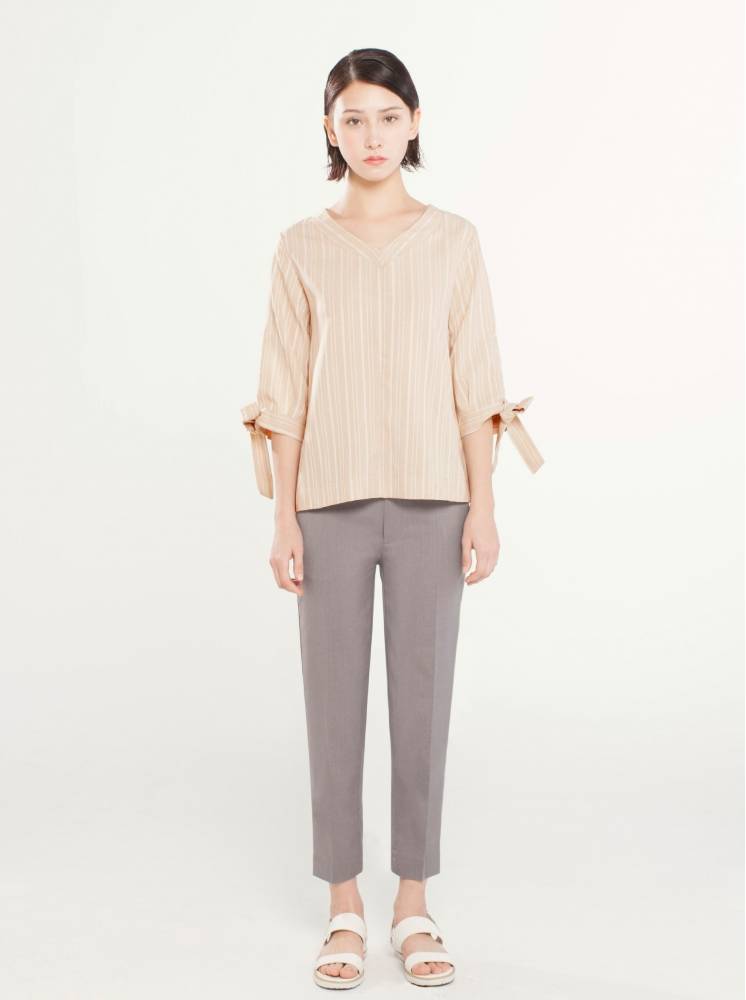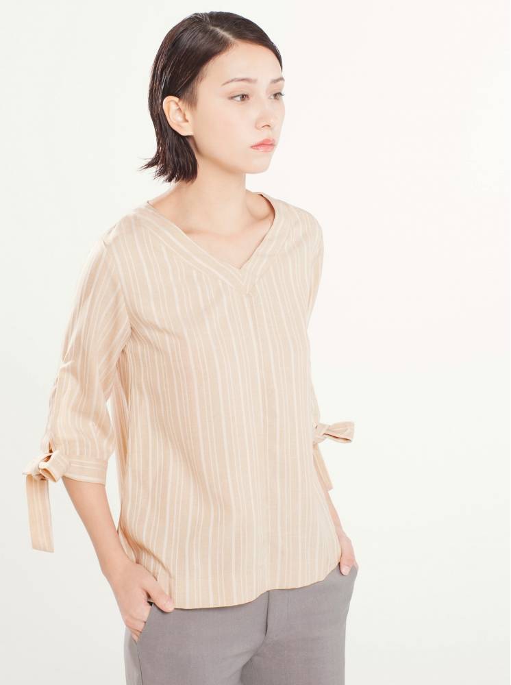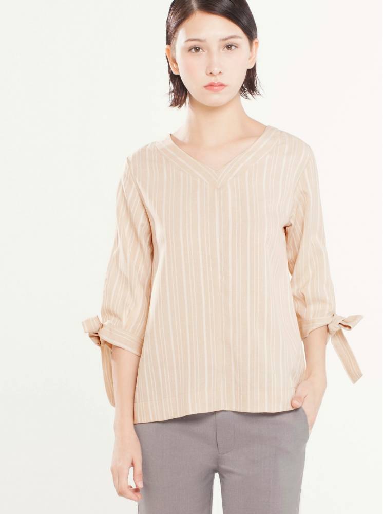 袖口蝴蝶結上衣-杏:選擇尺寸