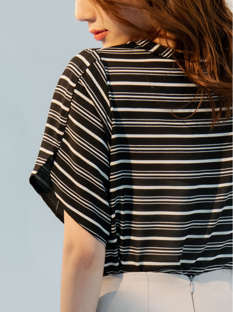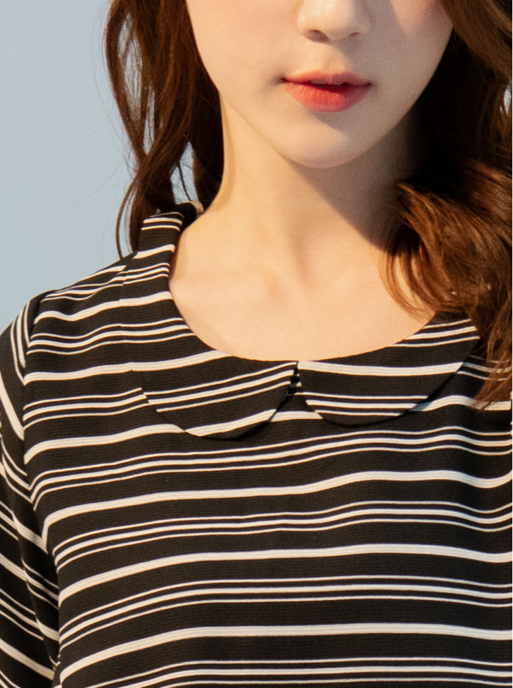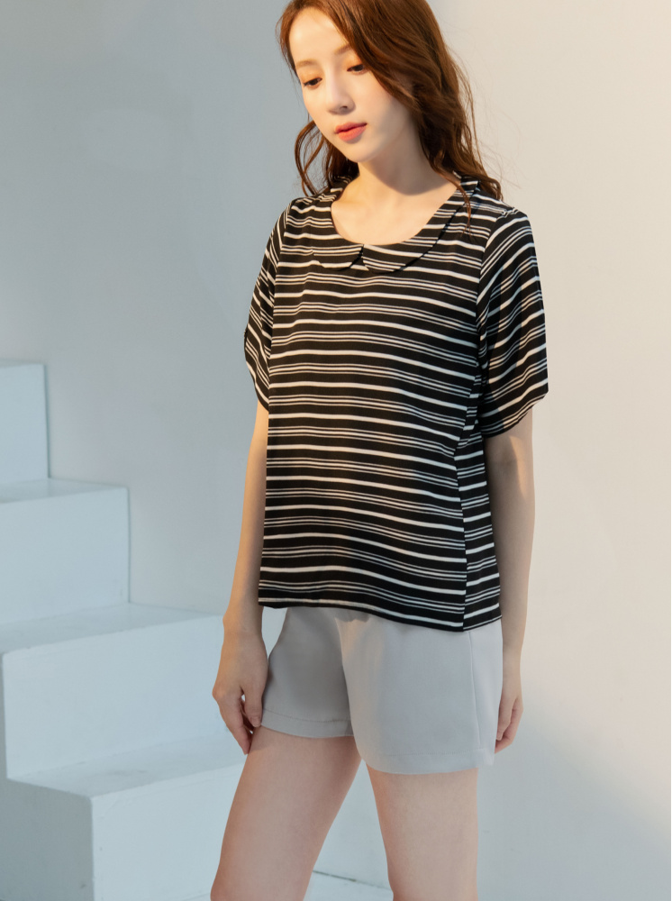 • 花瓣領條紋上衣-黑