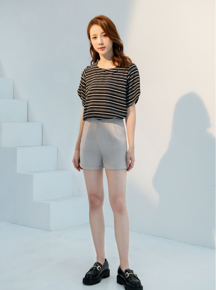 花瓣領條紋上衣-黑:選擇尺寸