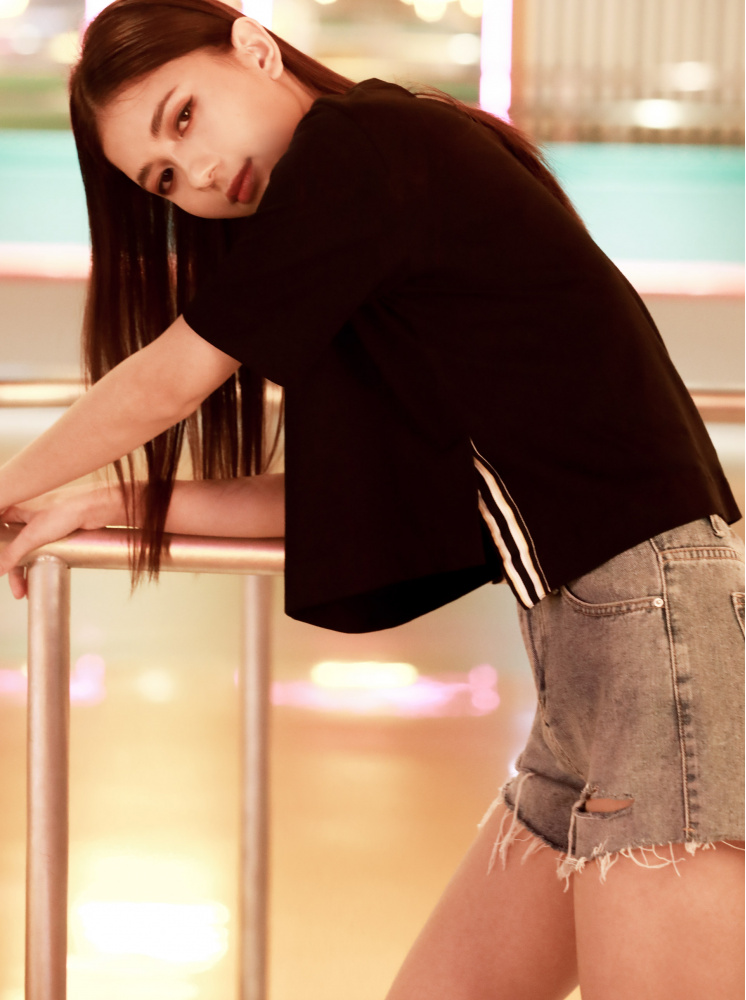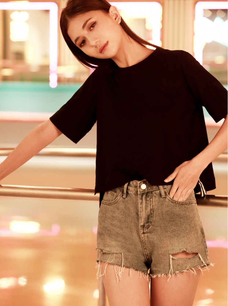 純棉側開叉撞色上衣-黑:選擇尺寸