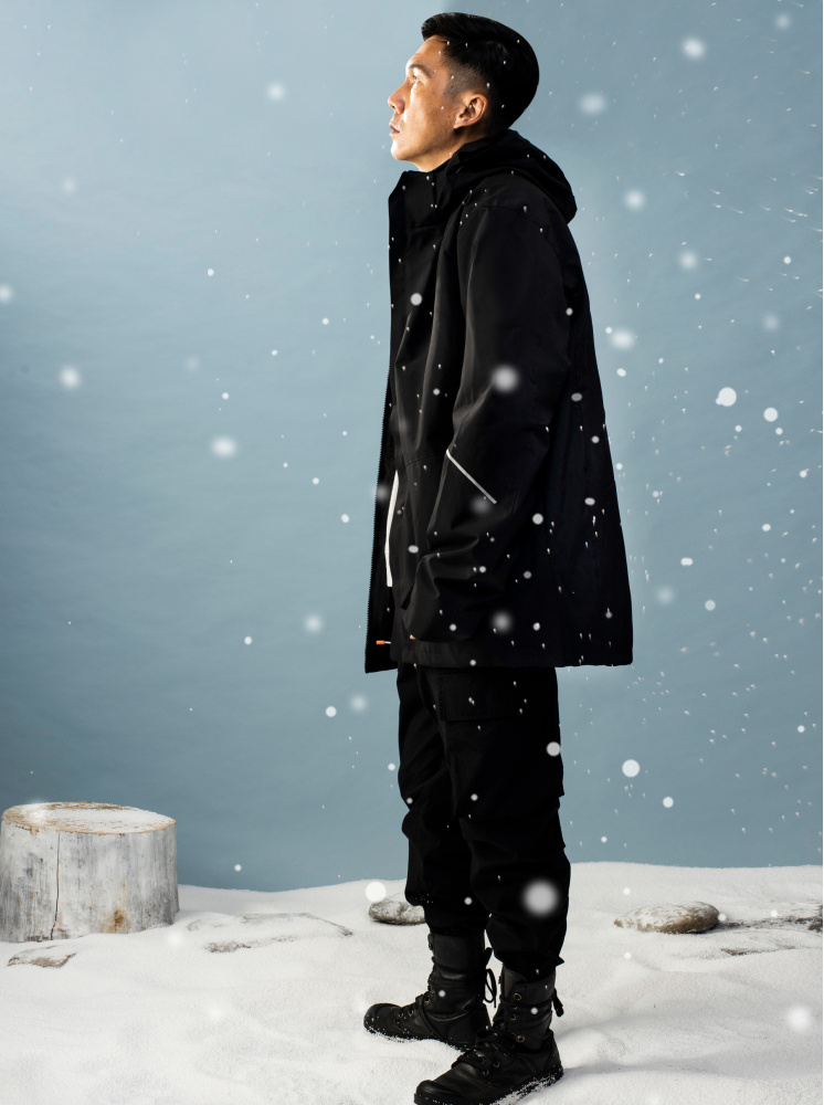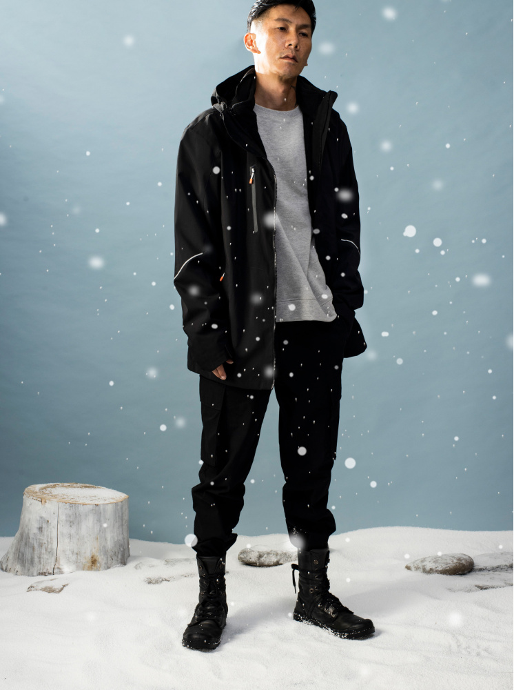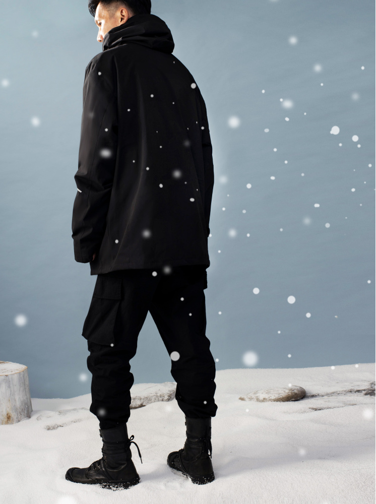 男款兩件式撞色防水極地外套-黑