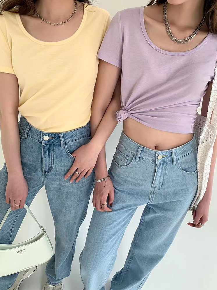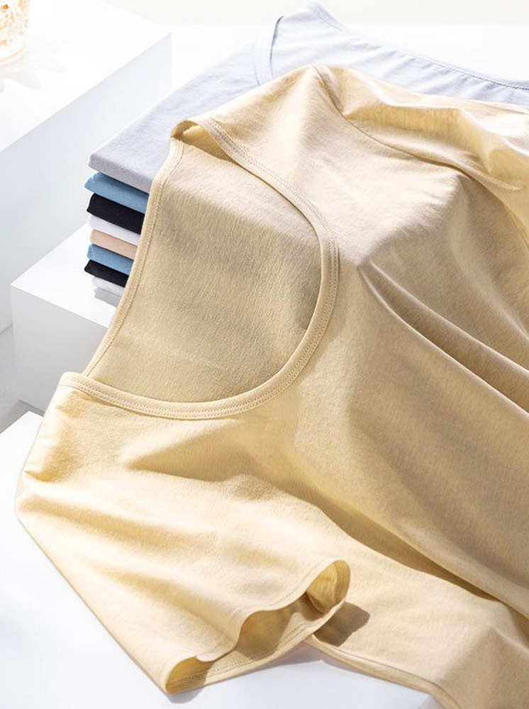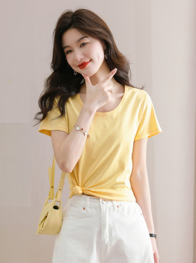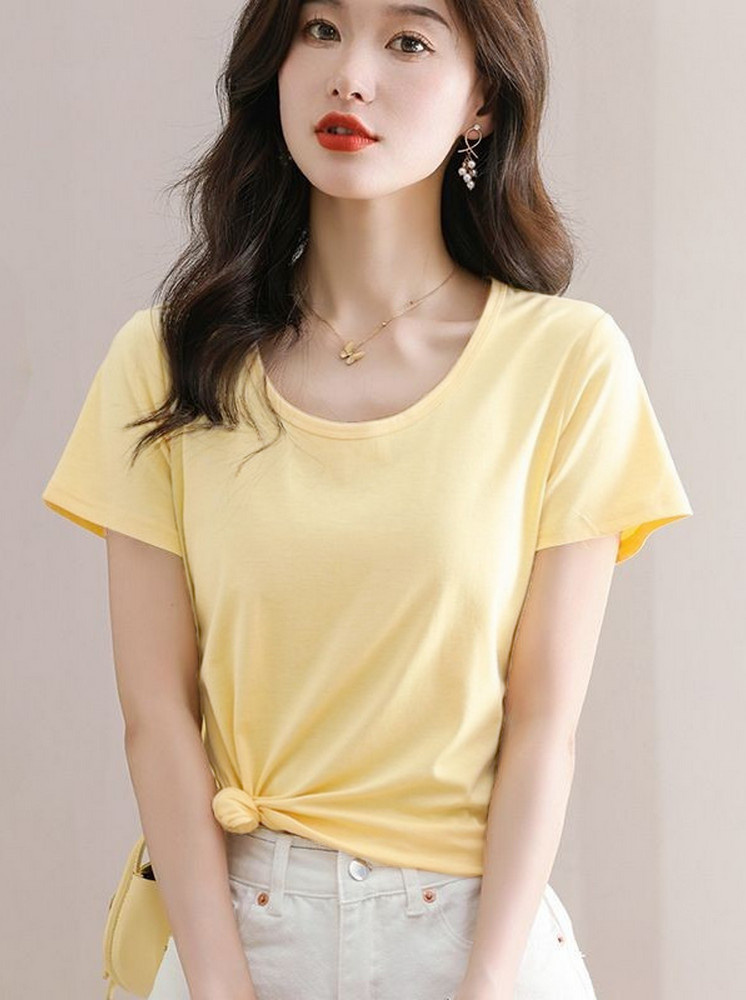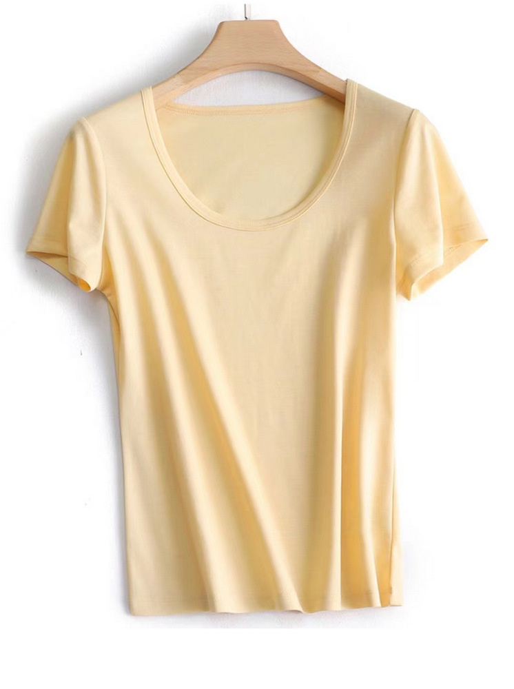 U領修身冰絲棉涼感T-粉黃:選擇尺寸