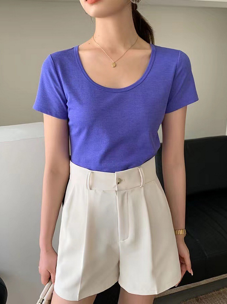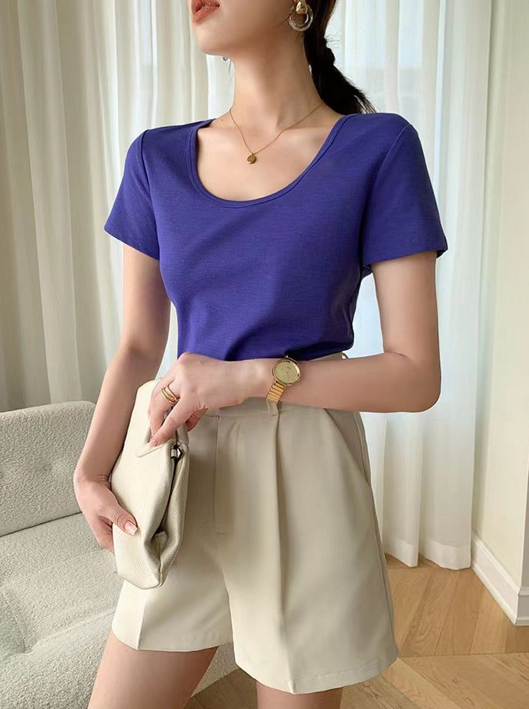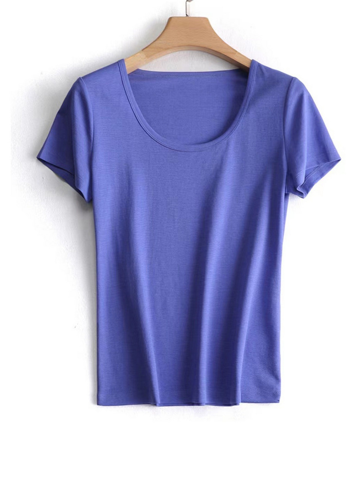 U領修身冰絲棉涼感T-寶藍