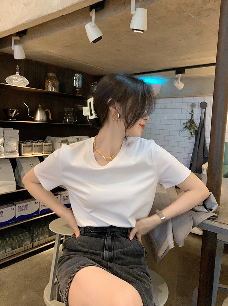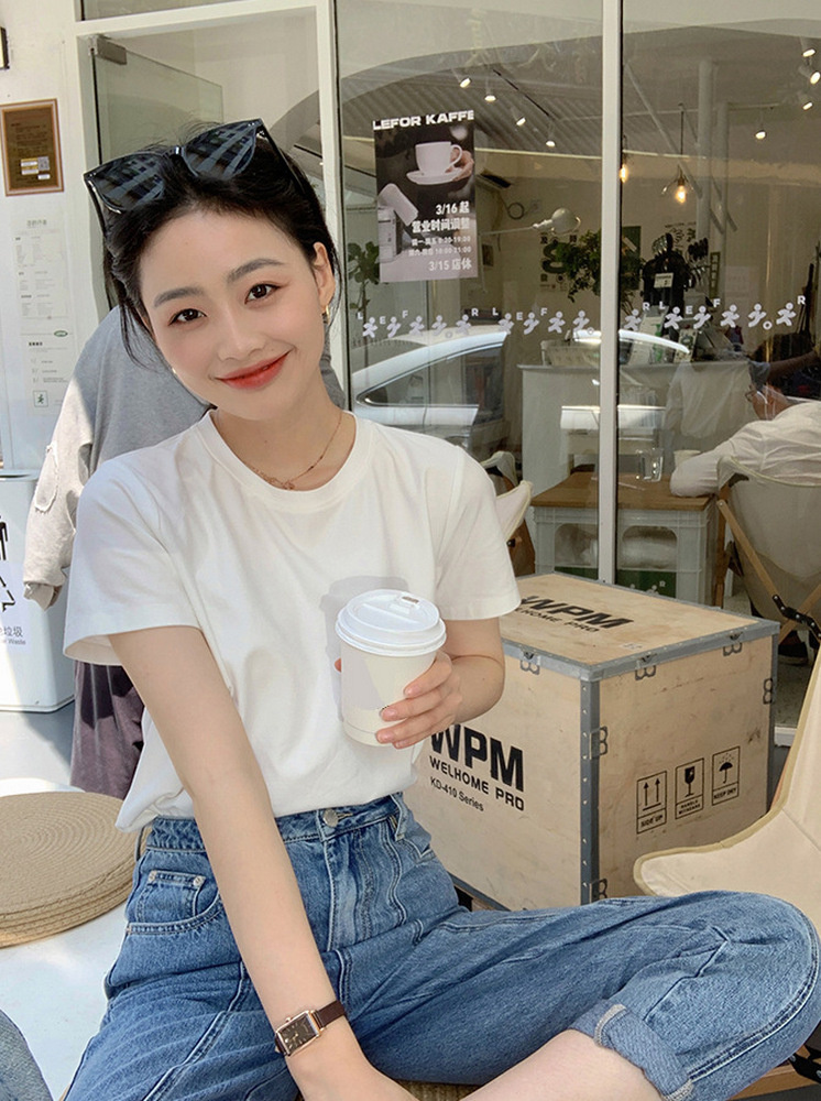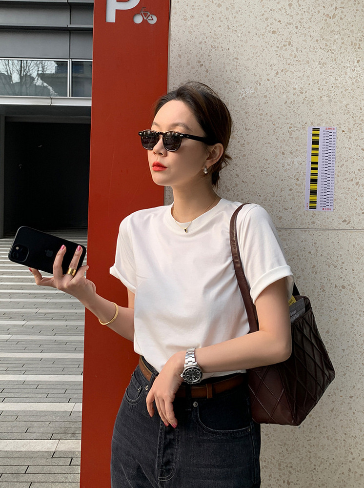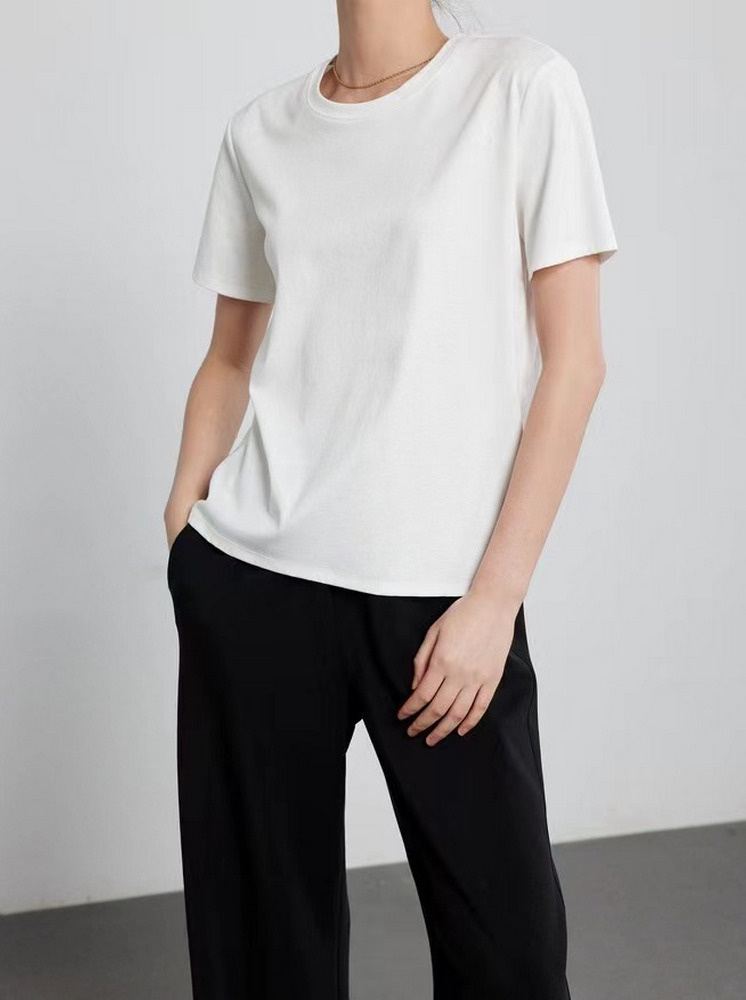 圓領桑蠶絲涼感T-白:選擇尺寸
