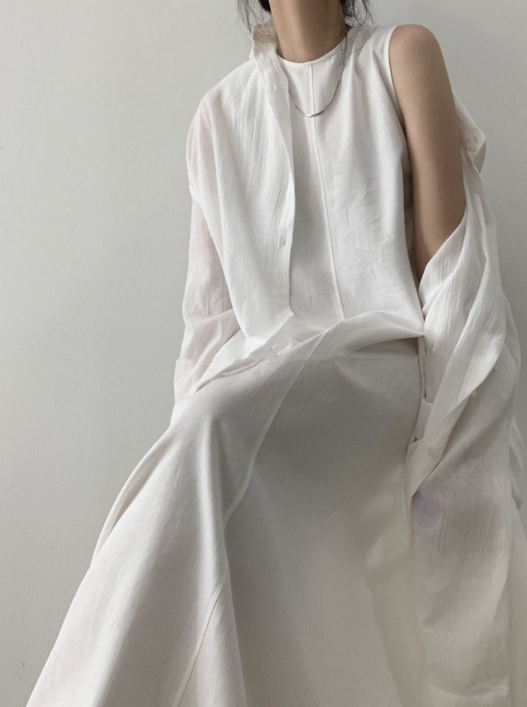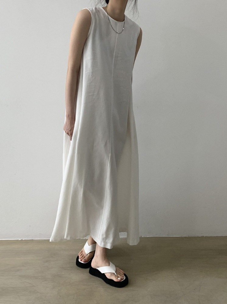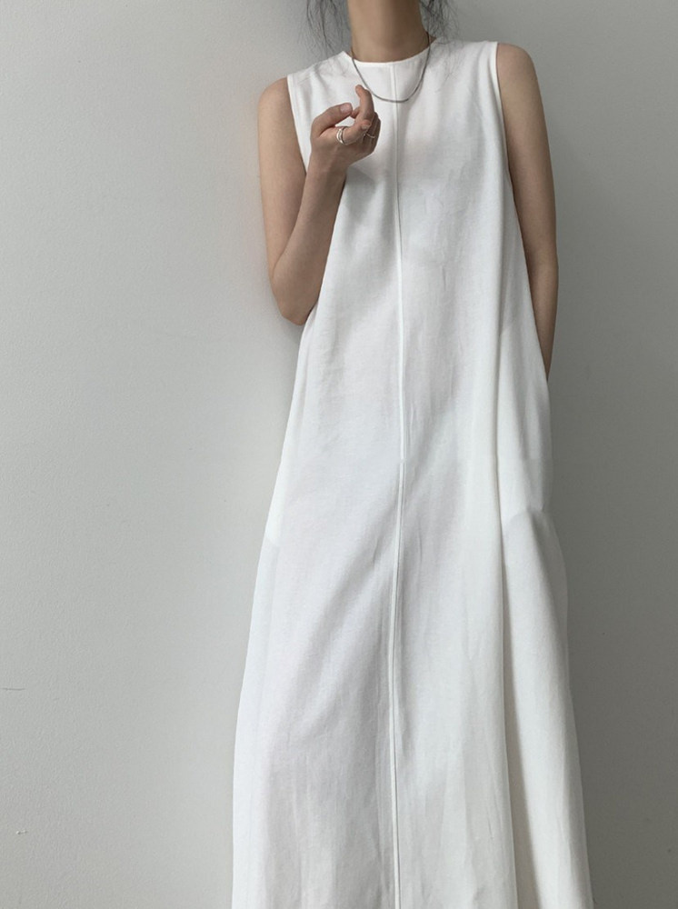 無袖寬鬆棉麻洋裝-白:選擇尺寸