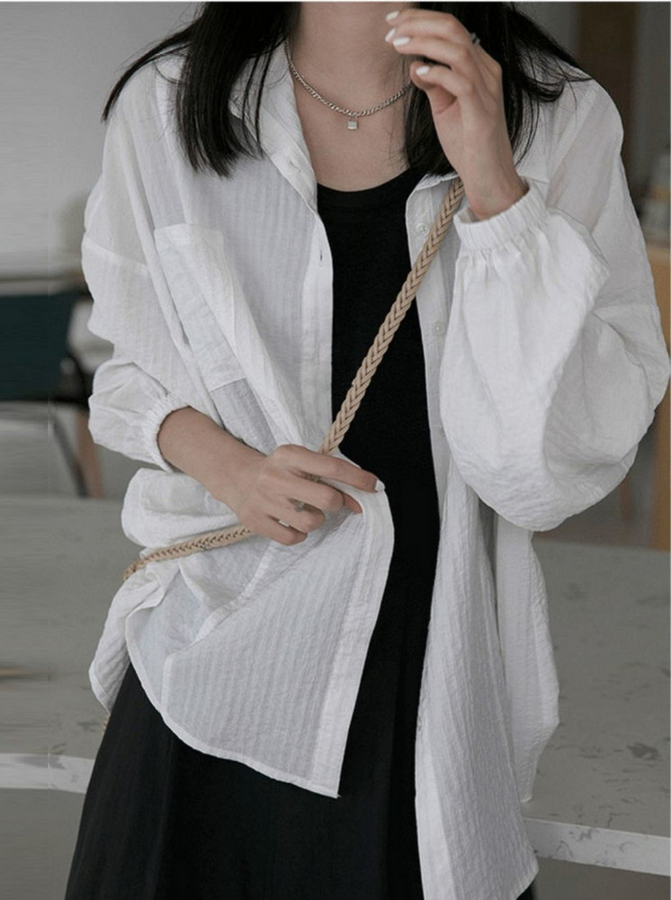慵懶防曬罩衫-白