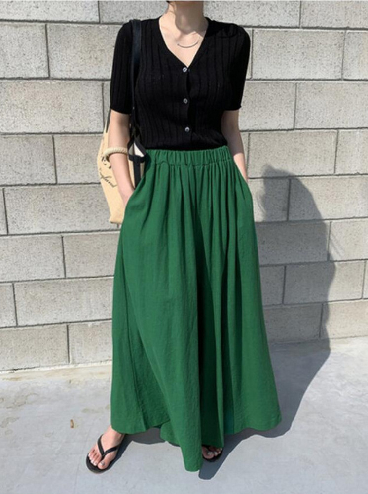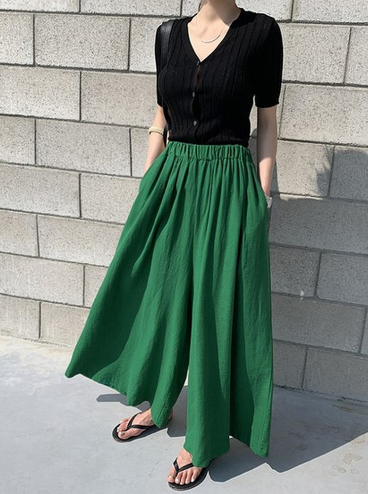 棉質鬆緊寬褲-綠