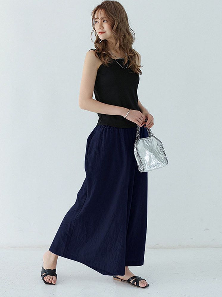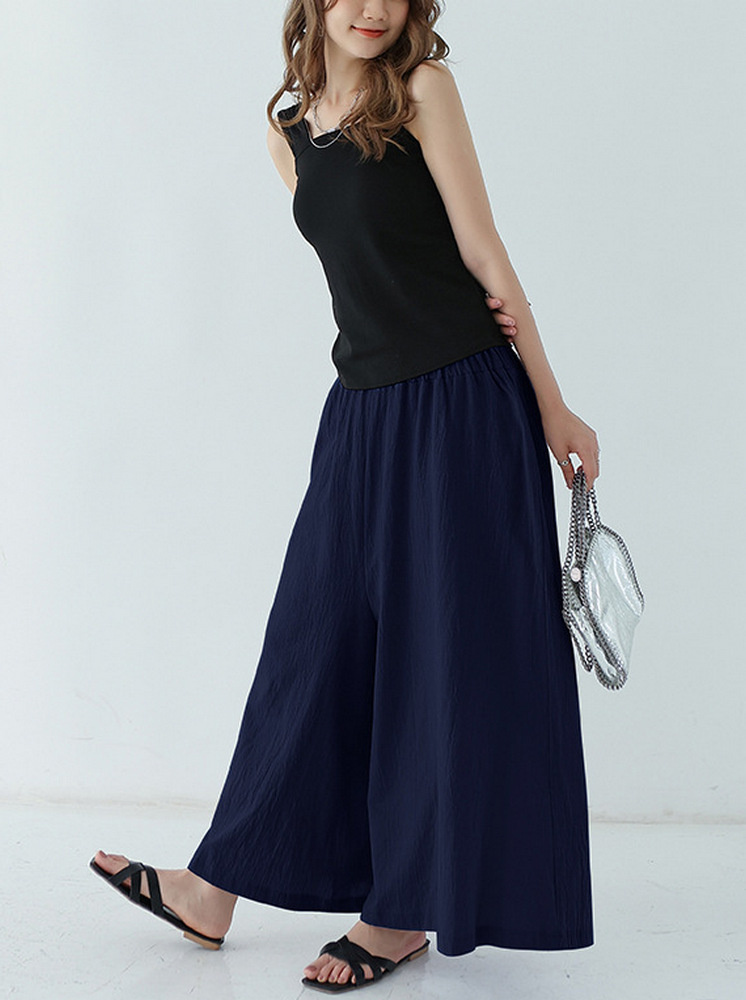 棉質鬆緊寬褲-丈青