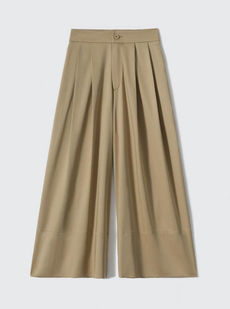 氣質8分闊腿褲-卡其