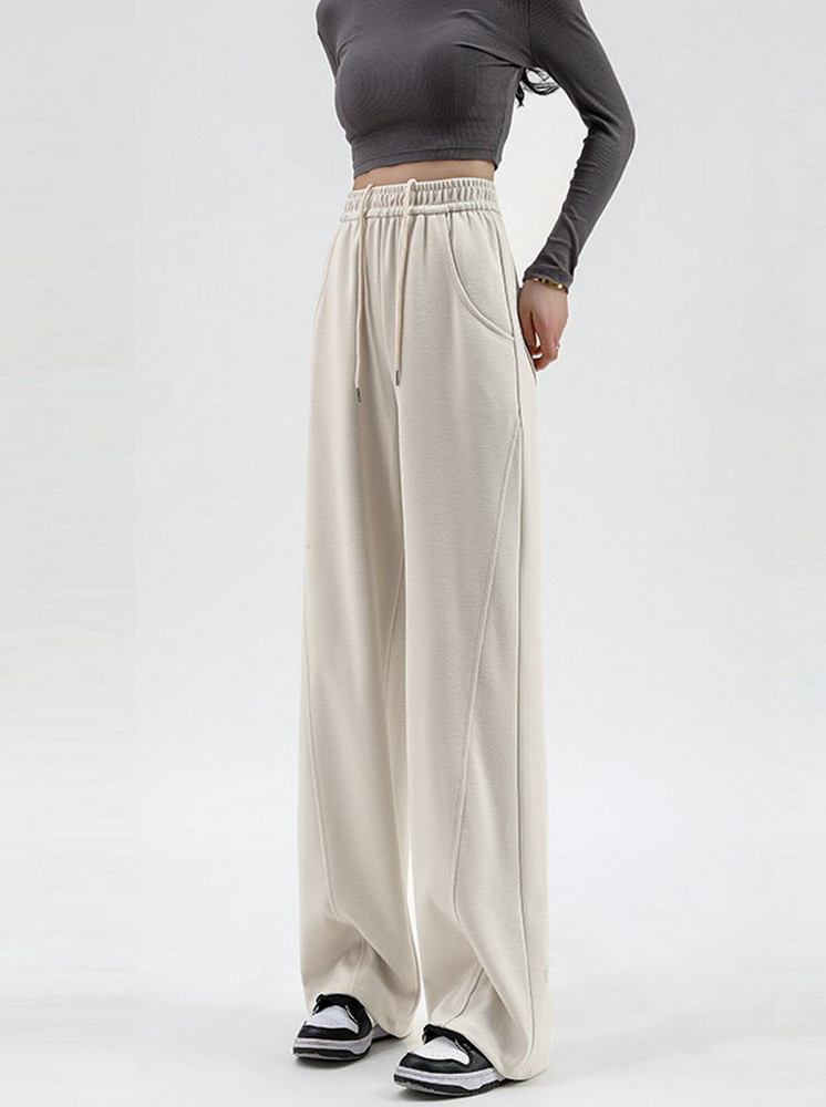 鬆緊休閒運動褲-米白