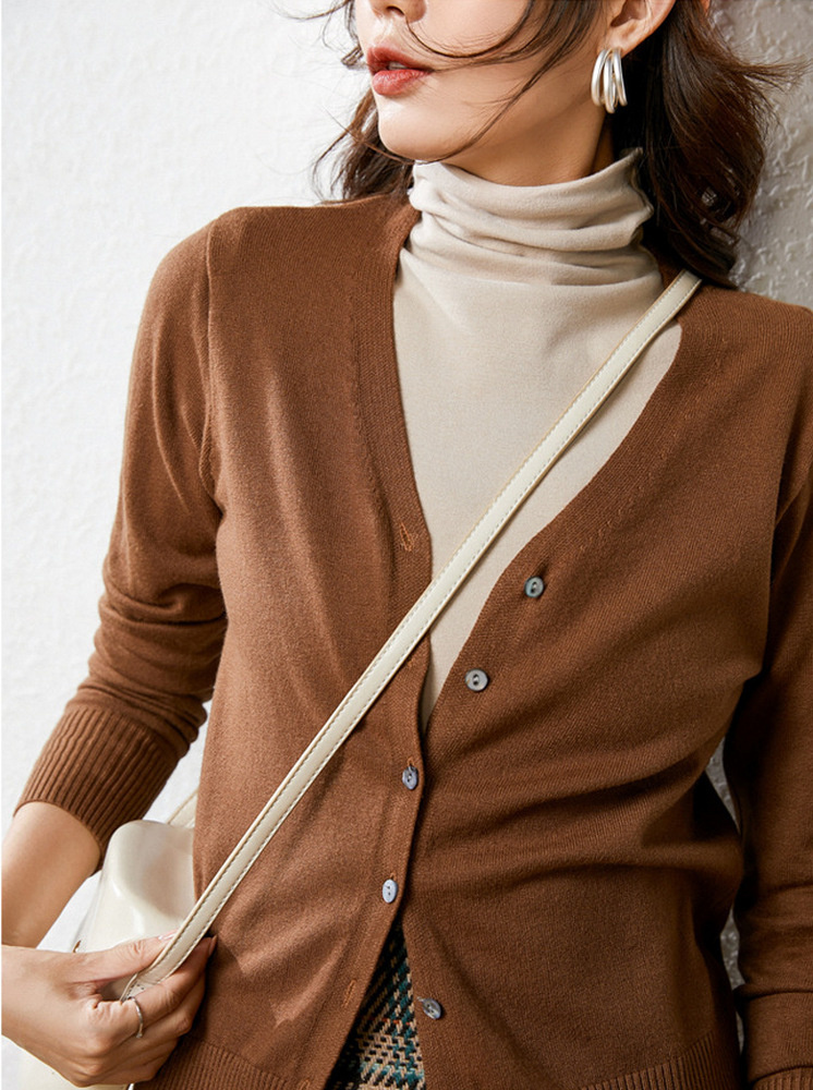 輕柔羊毛針織罩衫-咖啡:選擇尺寸