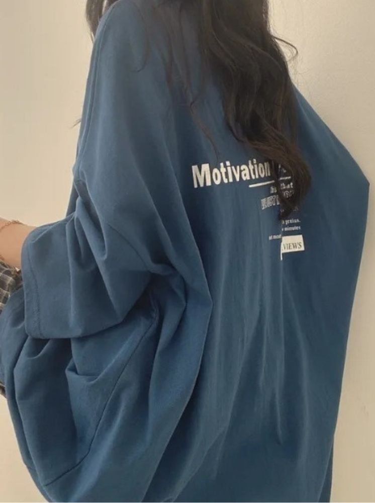 韓版落肩寬鬆棉T-藍:選擇尺寸