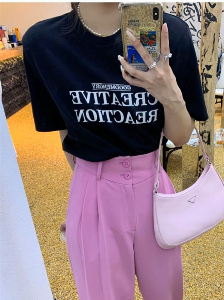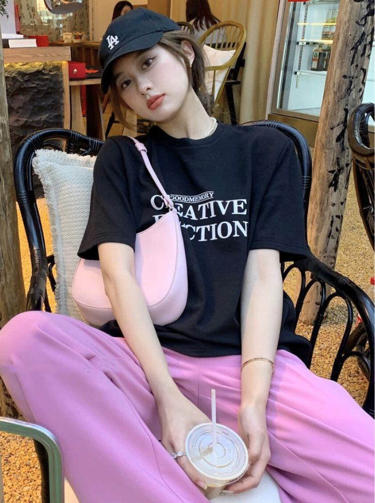 簡約字母印花棉T-黑:選擇尺寸