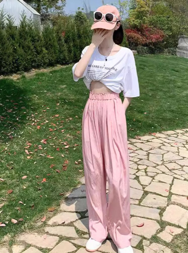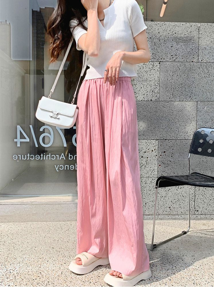 冰絲涼感修身山本寬褲-粉:選擇尺寸