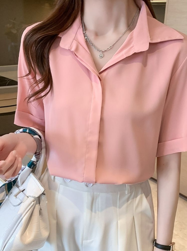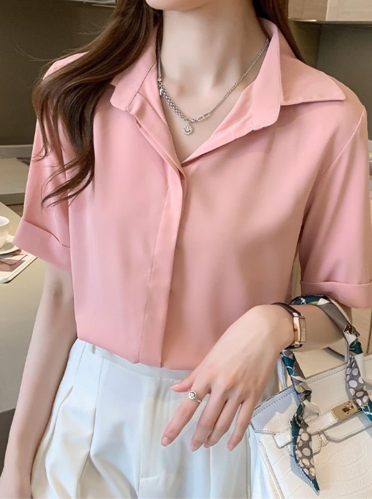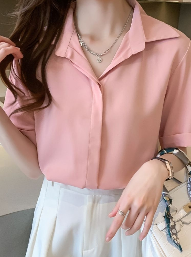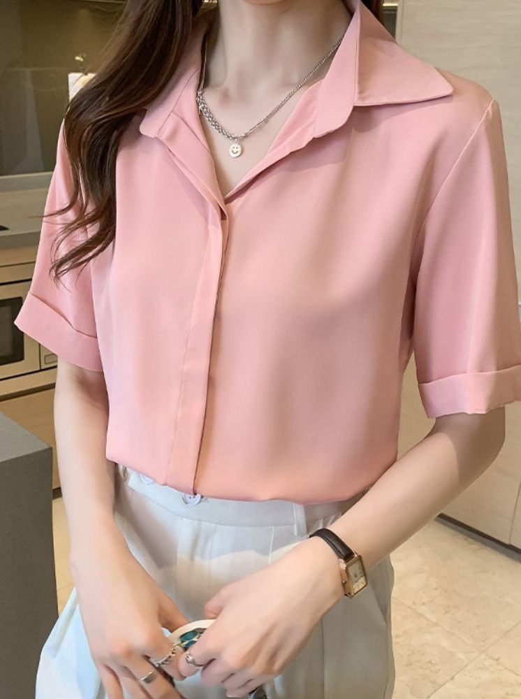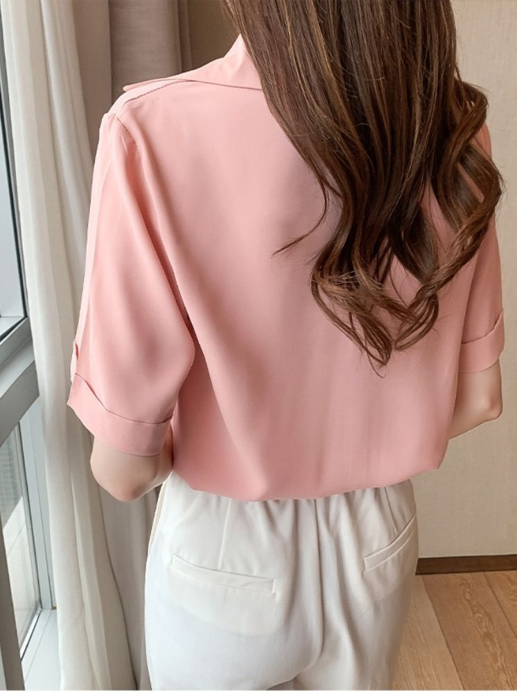 素雅短袖雪紡襯衫-粉:選擇尺寸