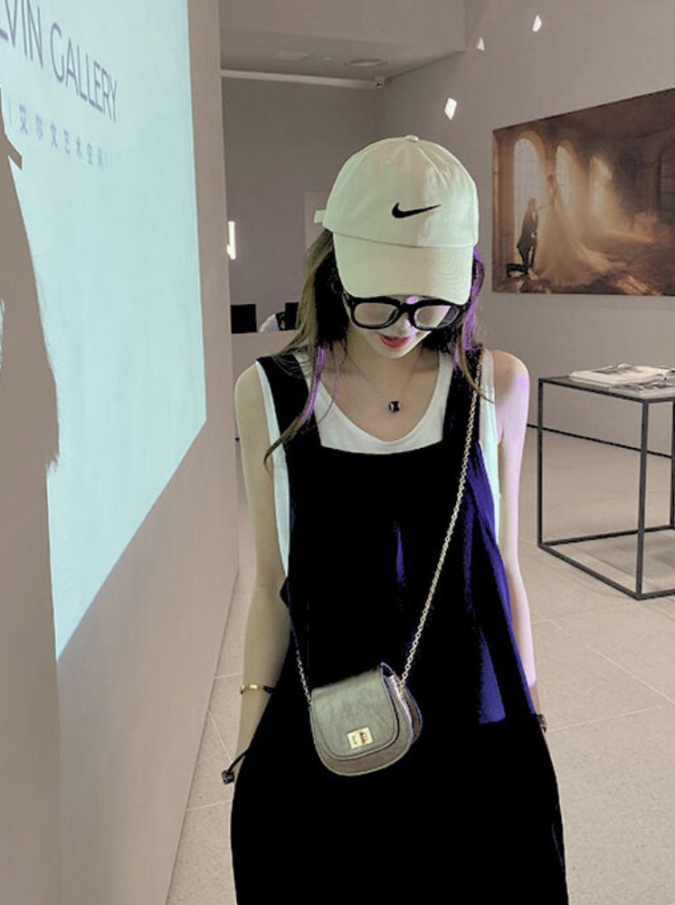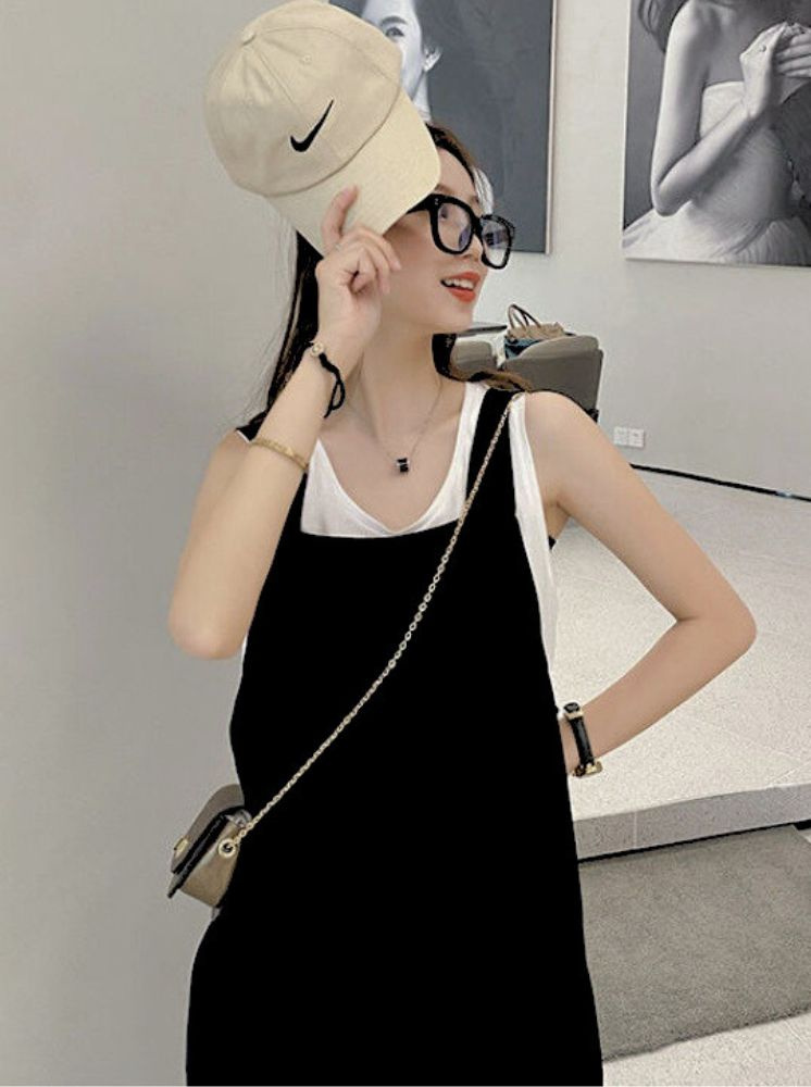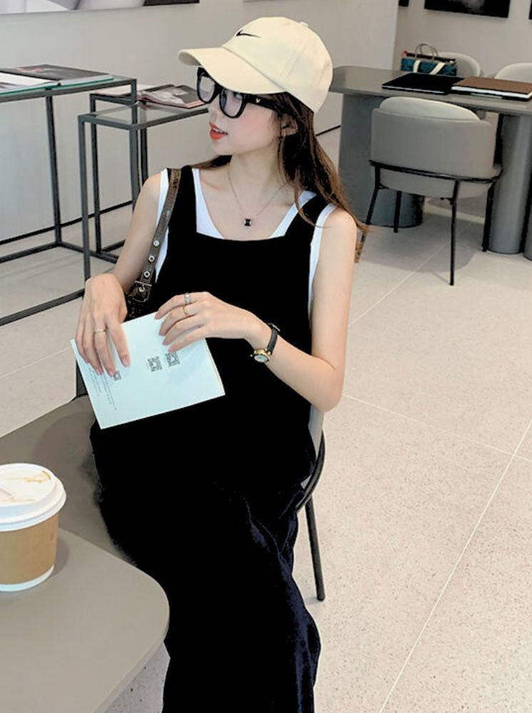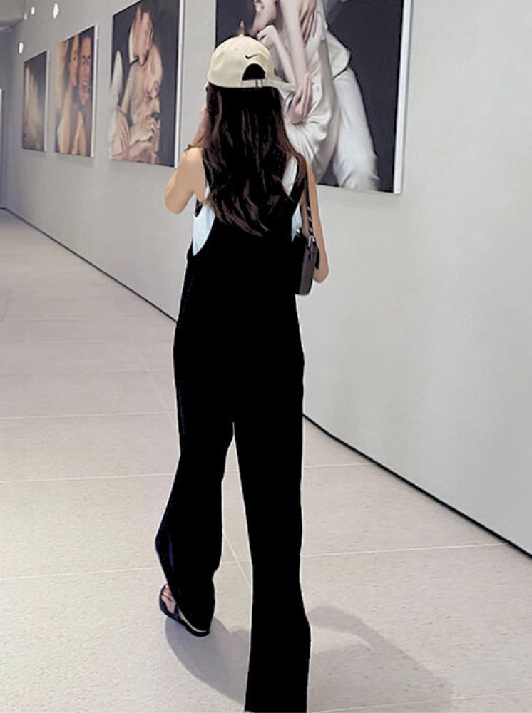 寬鬆開岔吊帶褲-黑:選擇尺寸