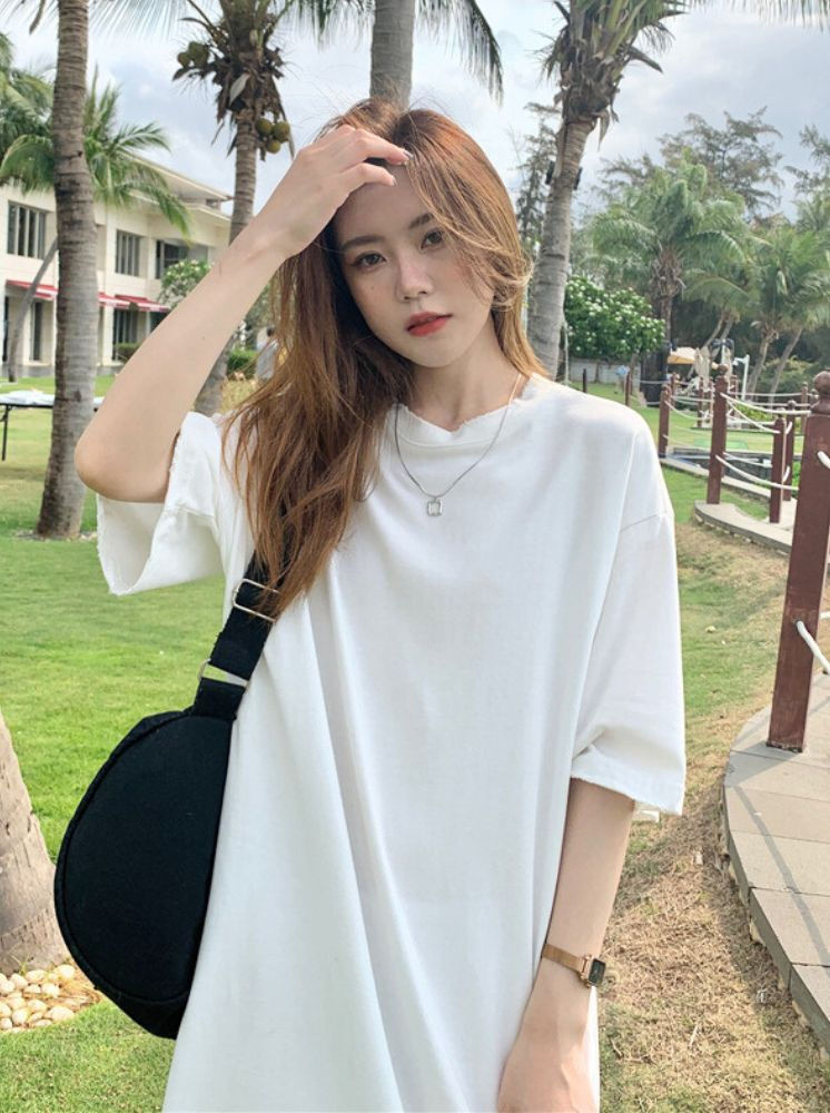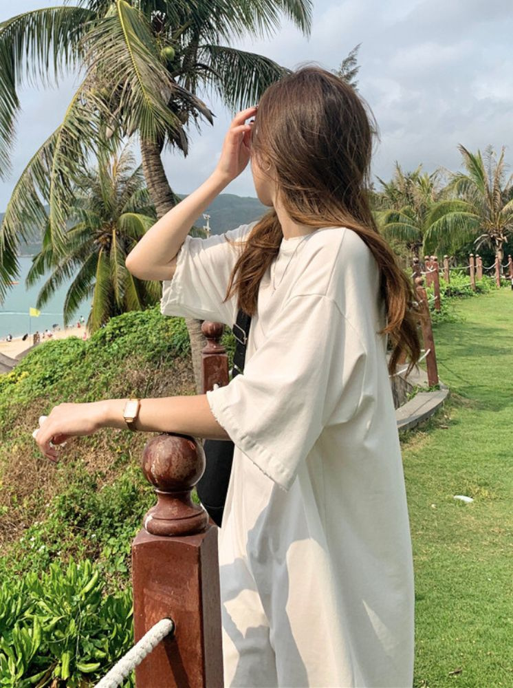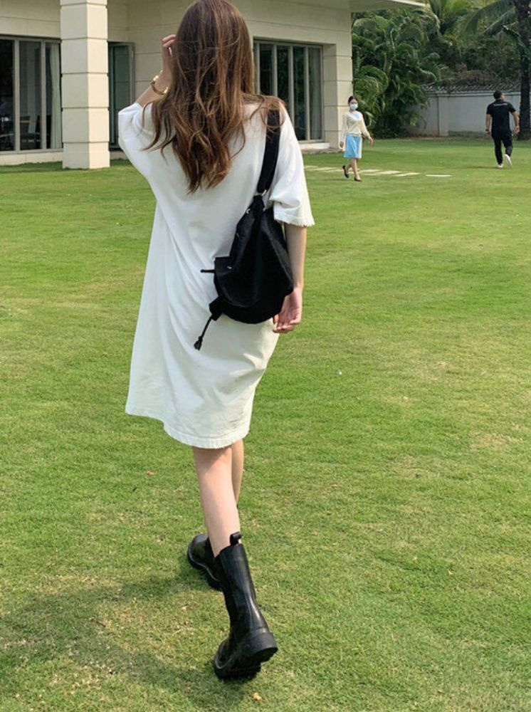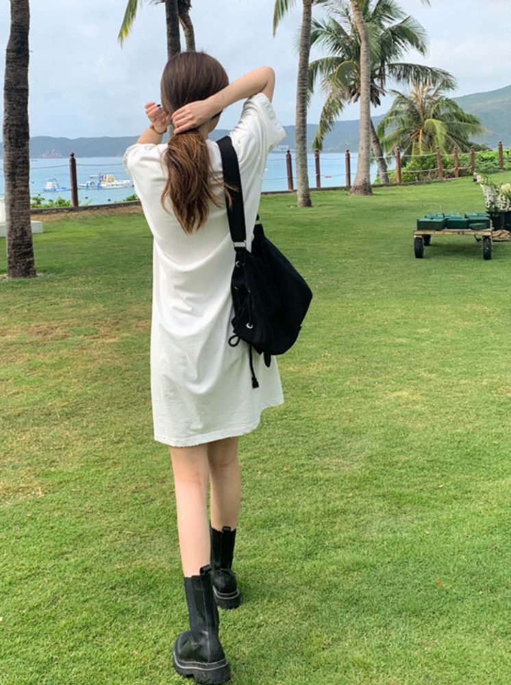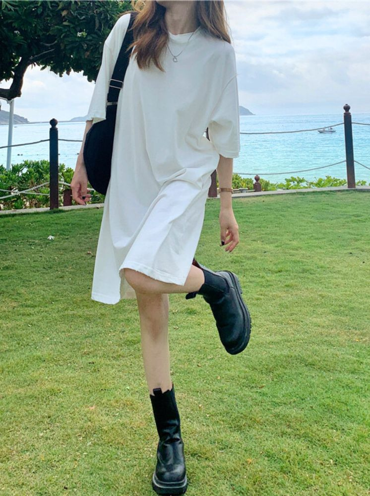 純棉長T洋裝-白