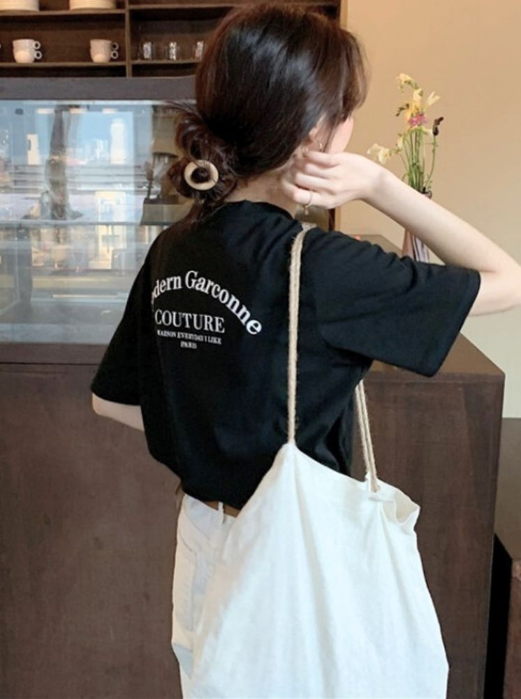 寬鬆簡約印花棉T-黑:選擇尺寸