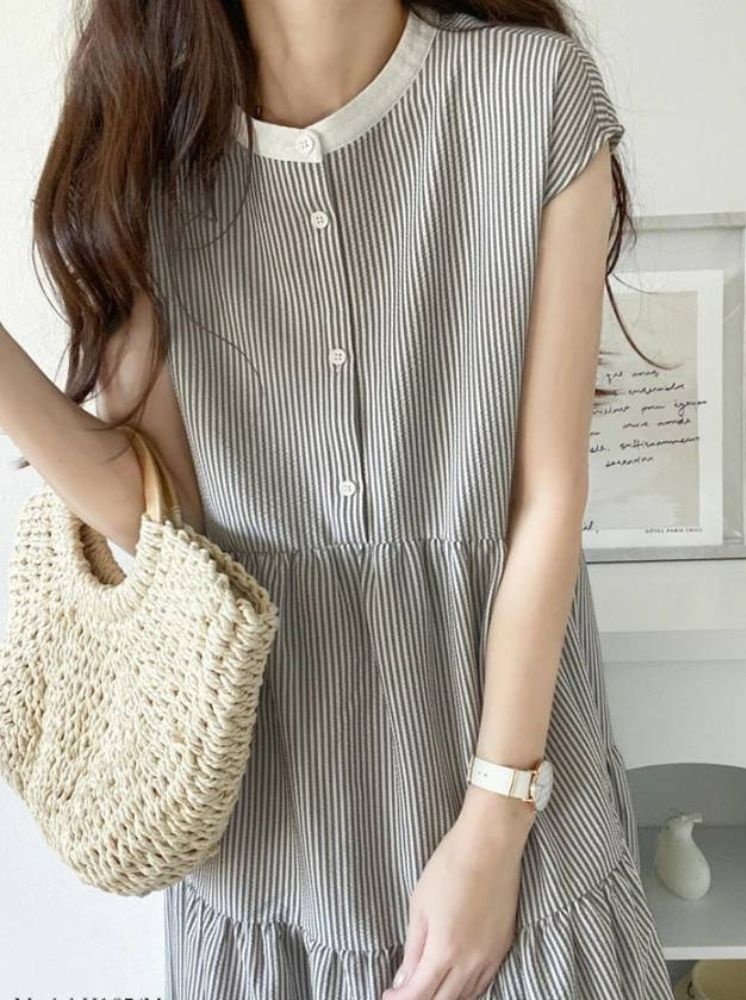 夏日條紋長洋裝-白底黑條:選擇尺寸