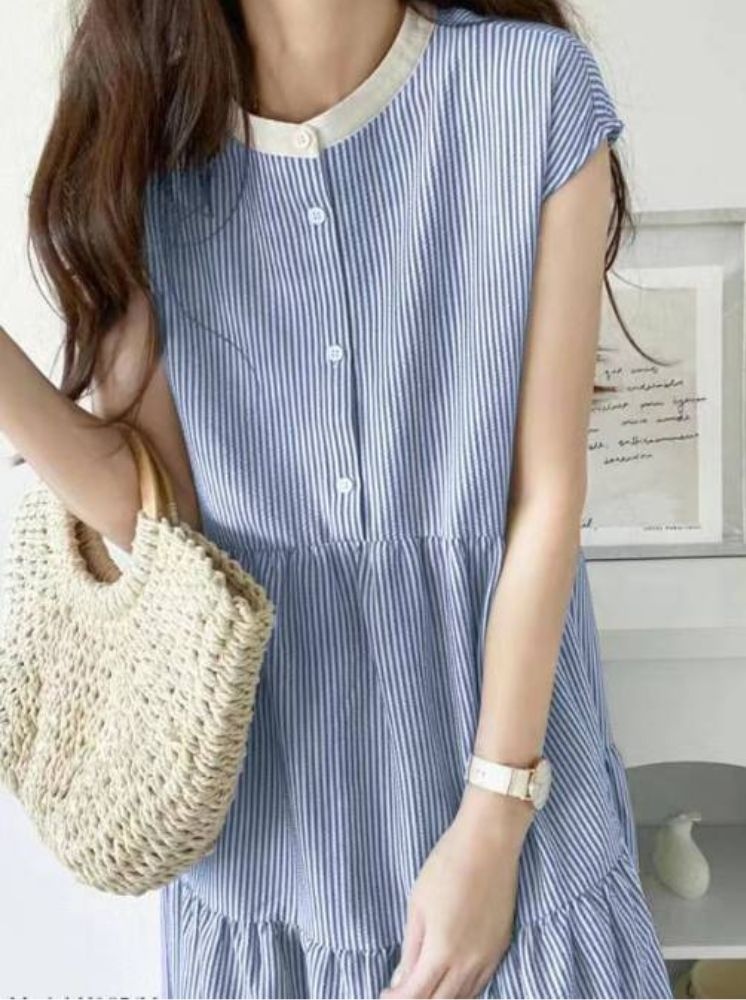 • 夏日條紋長洋裝-白底藍條