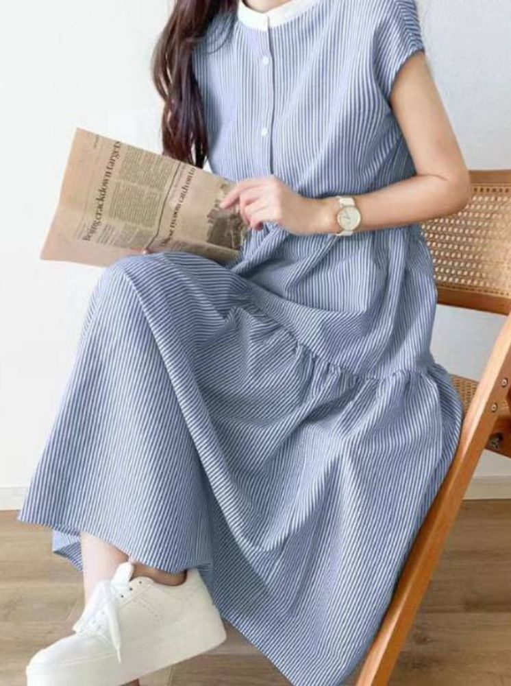 夏日條紋長洋裝-白底藍條