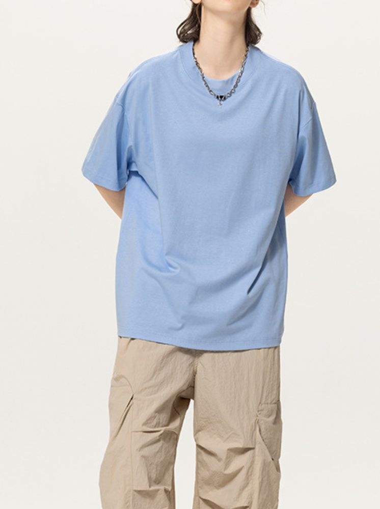 落肩圓領涼感T-藍:選擇尺寸