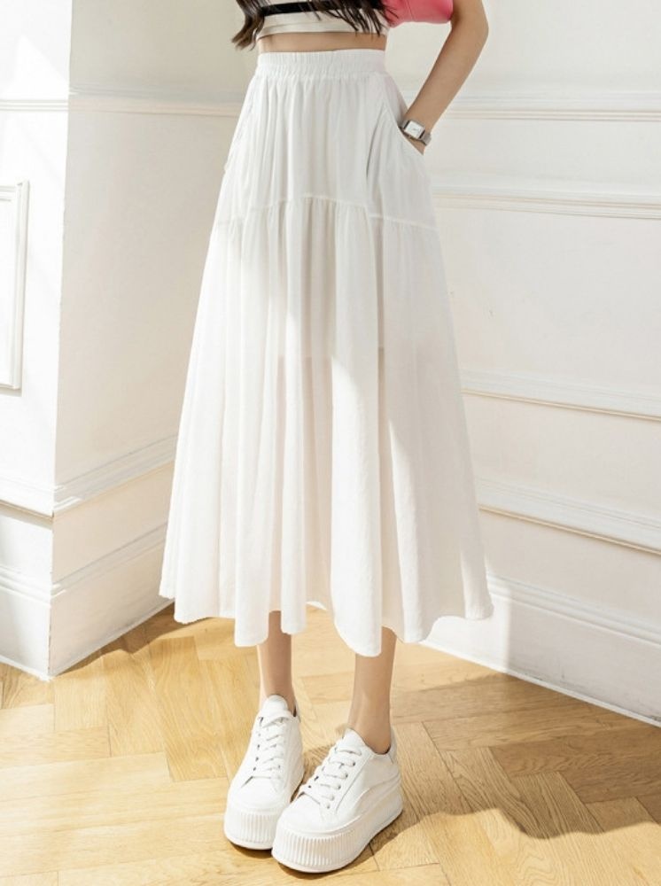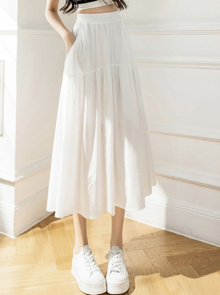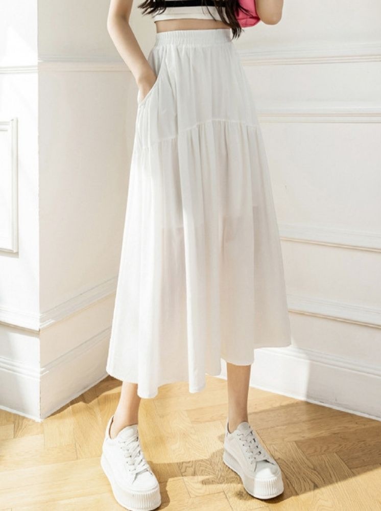 • 鬆緊雪紡長裙-白