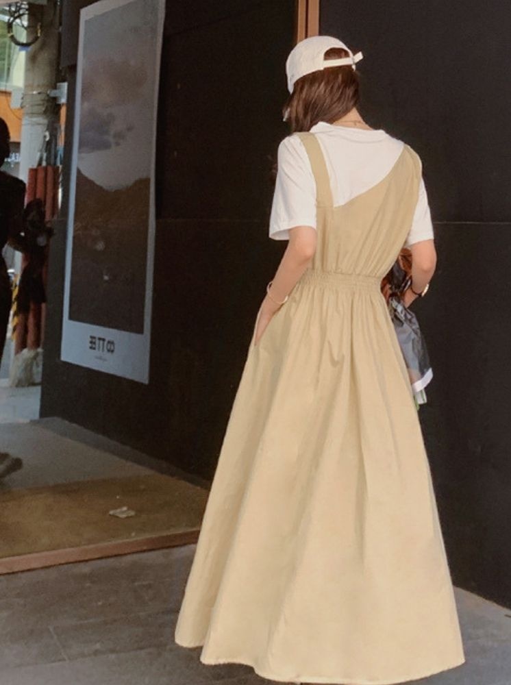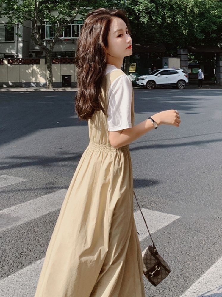 氣質假兩件顯瘦洋裝-卡其:選擇尺寸