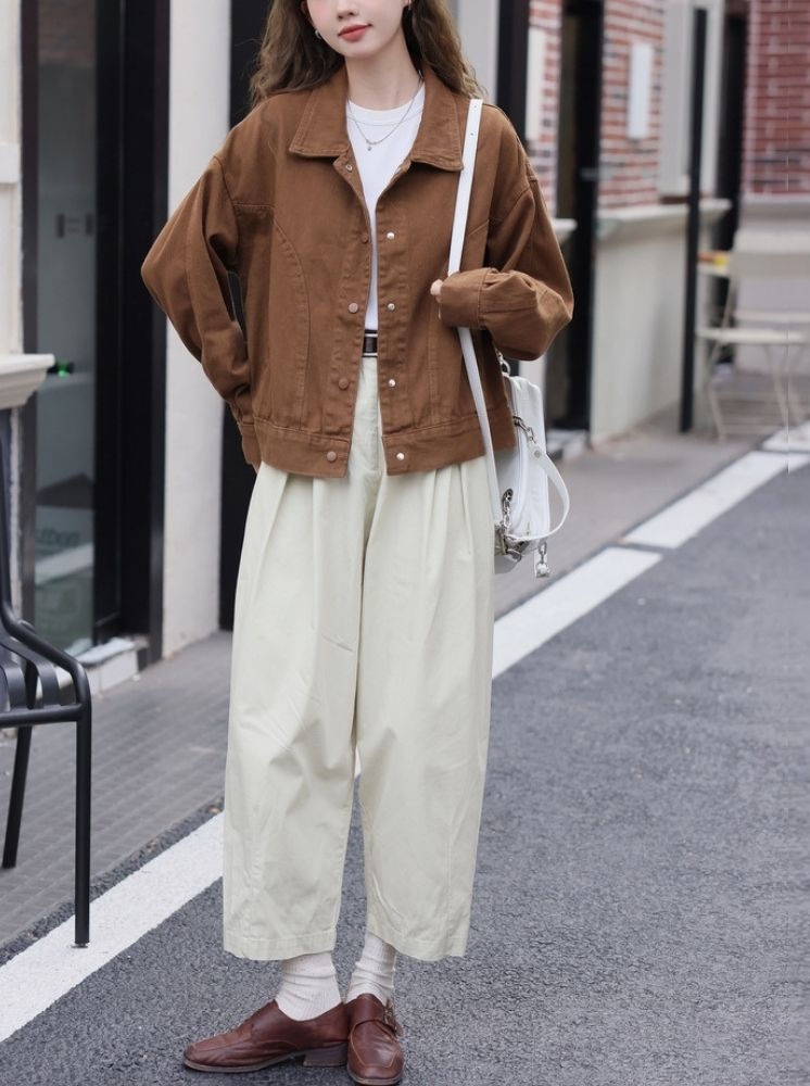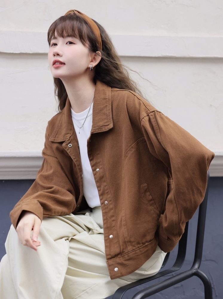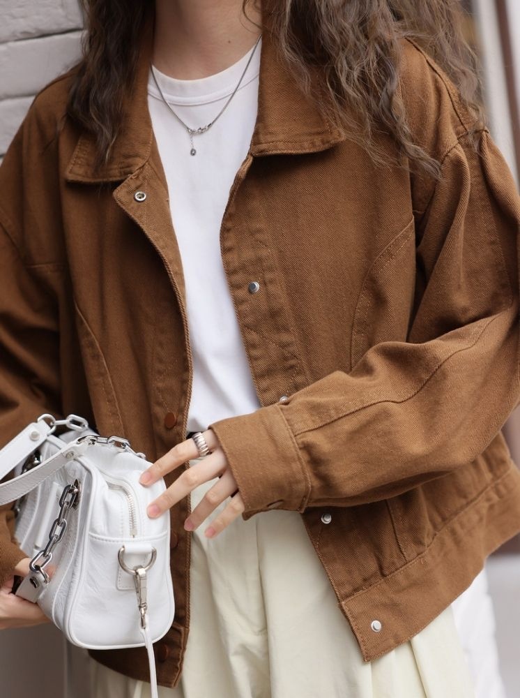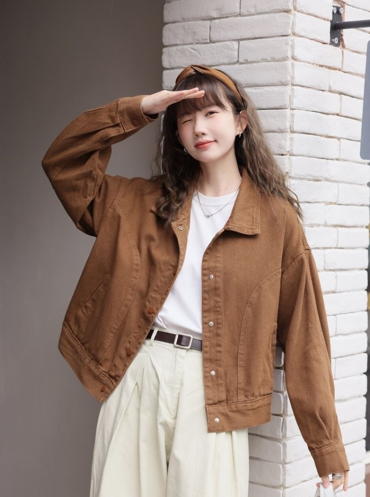復古寬鬆短版外套-咖啡
