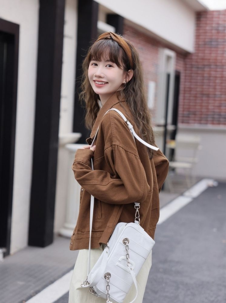復古寬鬆短版外套-咖啡:選擇尺寸