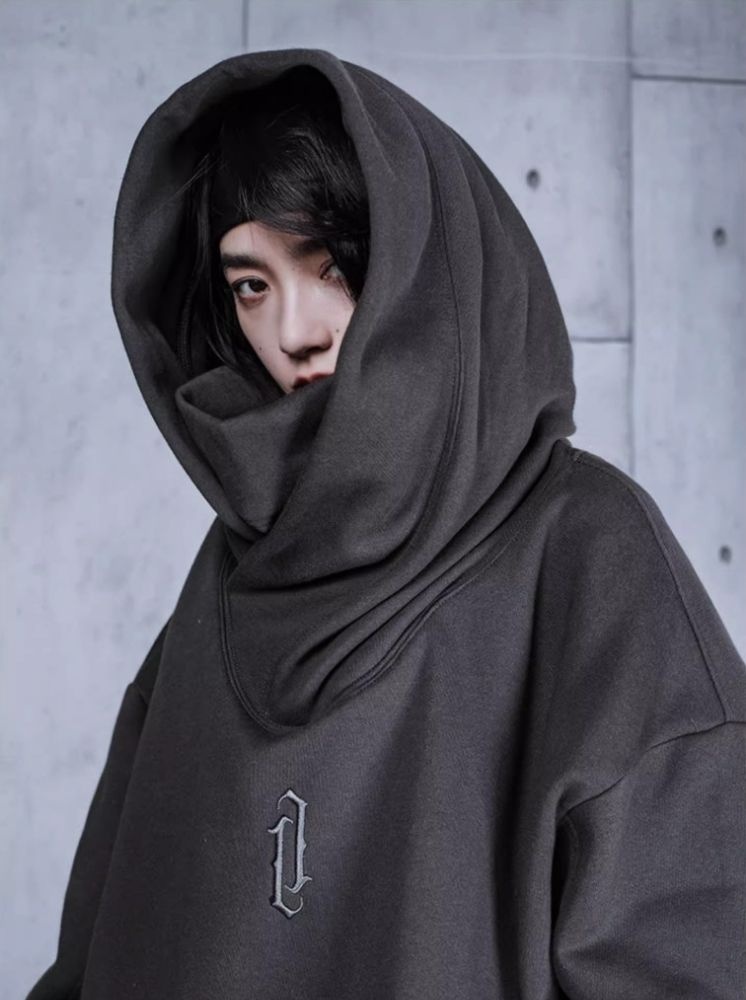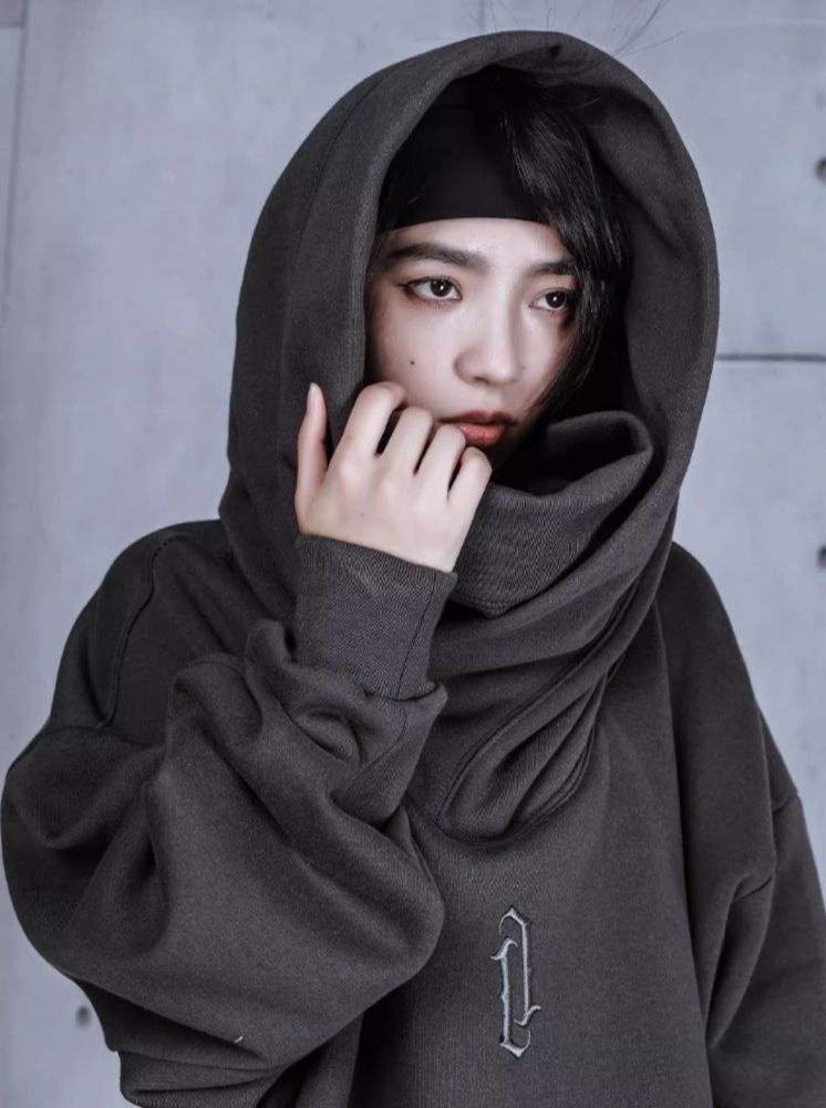 立領寬鬆刷毛連帽T-深灰:選擇尺寸